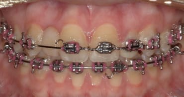 Orthodontic and cosmetic dentistry in case of missing lateral and peg shape lateral all done during the treatment by Dr. Zahedi, so the patient can enjoy her smile while still in braces.
